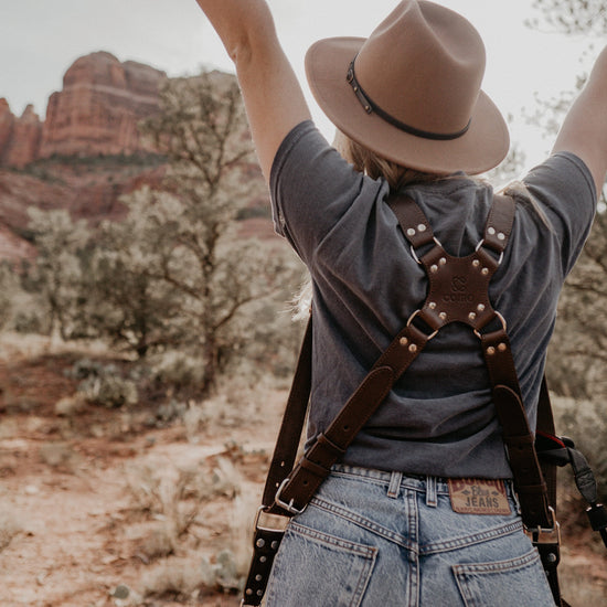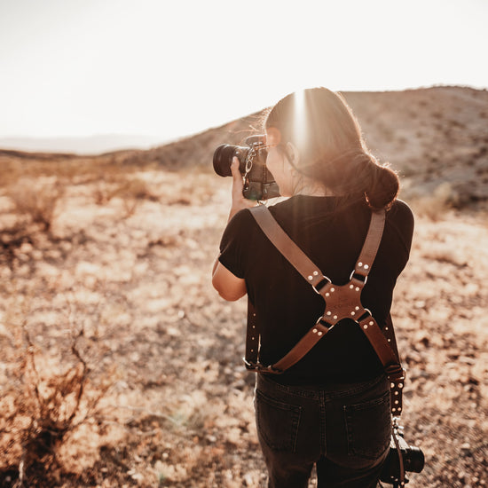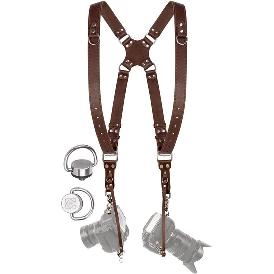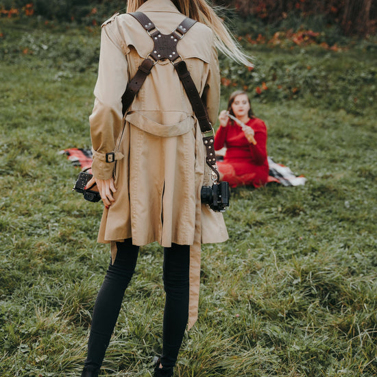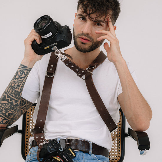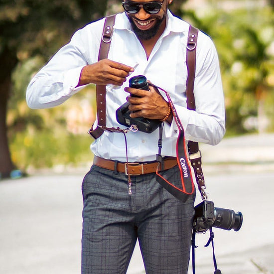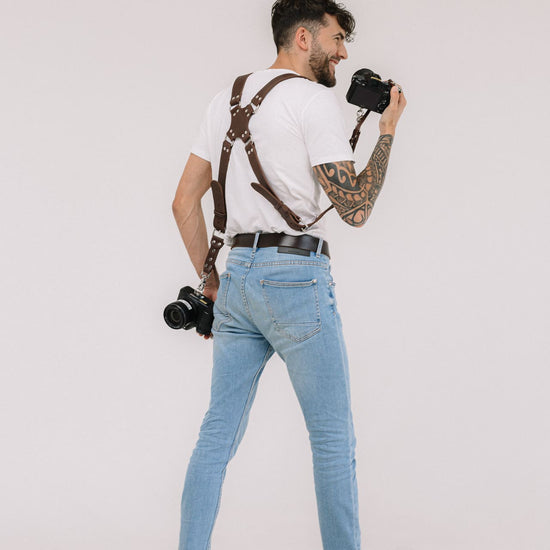 Our brown dual camera harness are designed to provide security and comfort and enhance your creative impulse. You can comfortably carry your two cameras with you and take incredible shots with ease.