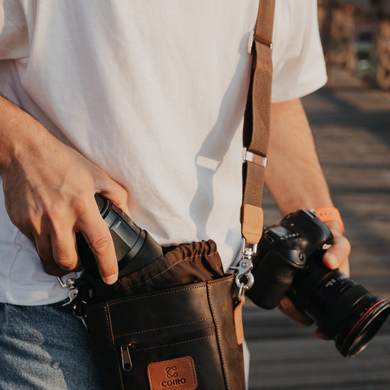 Camera Lens Pouch Bag with Cross Shoulder Strap Brown