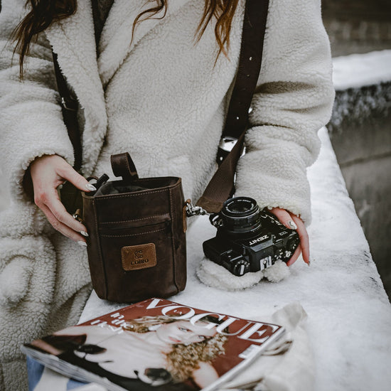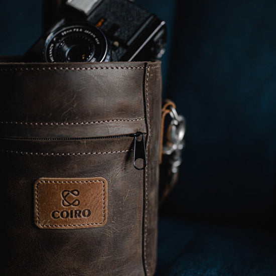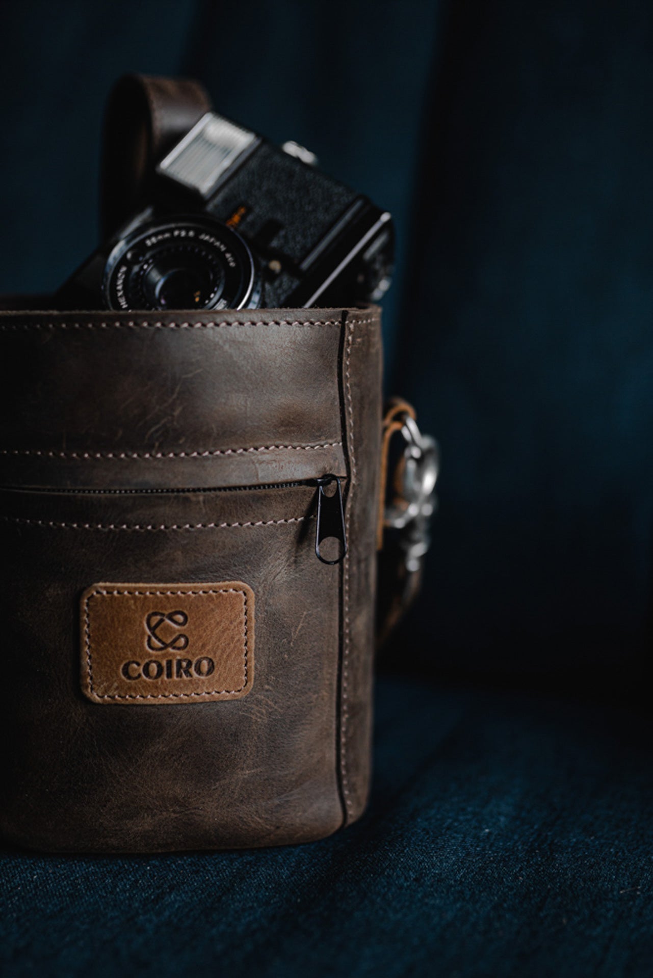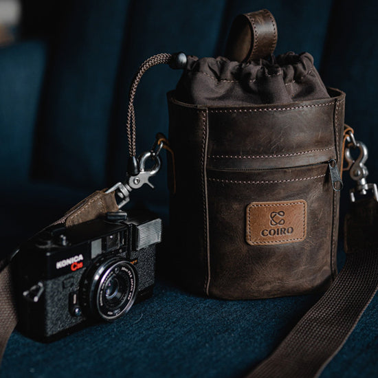 This camera lens bag is crafted from premium quality genuine leather with sturdy stitching and soft inserts, a durable design which is guaranteed to withstand for many years.