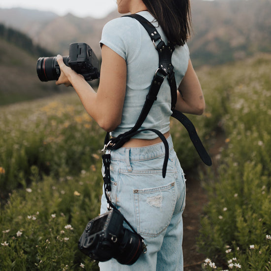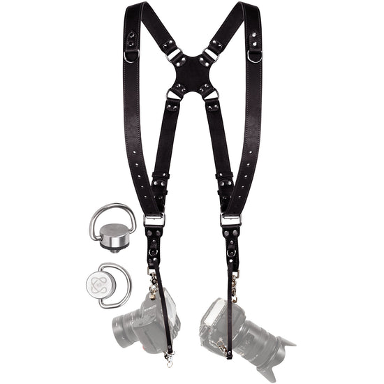 Experience unmatched comfort and security with our Dual Harness Black. This dual camera harness is meticulously designed to help you carry two cameras effortlessly, allowing you to capture stunning shots with ease.