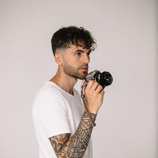 Handcrafted from premium full-grain leather and equipped with rust-resistant metal D-rings, this strap is built to last. Its elegant brown finish pairs seamlessly with any outfit, making it a practical and stylish accessory for photographers on the go.