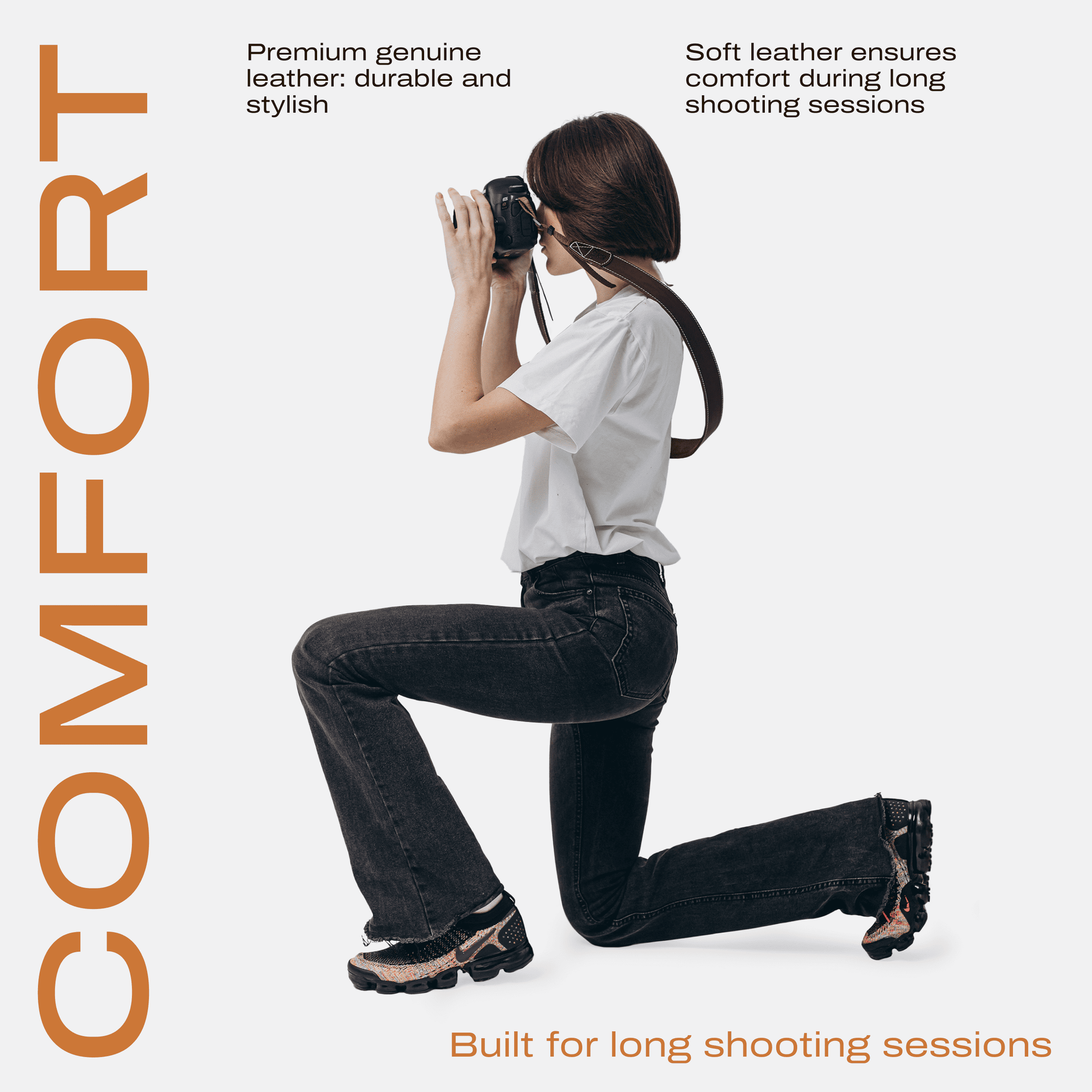 Designed with a classic aesthetic, it features an adjustable length to suit your preferred carrying style—whether around the neck or crossbody—offering secure support throughout your shoots. Thanks to its vintage-inspired design and high-quality materials, this strap seamlessly blends timeless elegance with modern practicality.