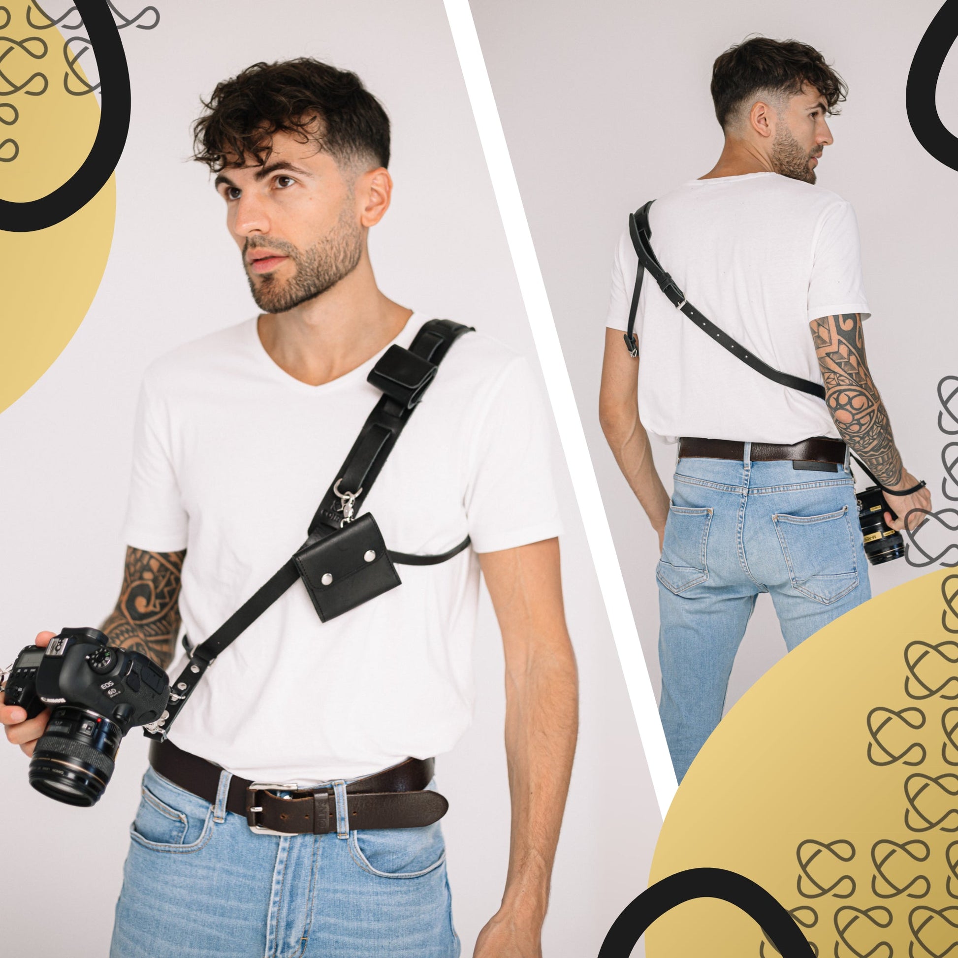 The sleek and versatile camera sling in classic black is the ultimate choice for photographers who value both style and functionality. With its minimalist design and practical pockets, it offers convenient storage for your accessories while maintaining a professional and modern look. The black color effortlessly complements any outfit, making it perfect for any occasion.
